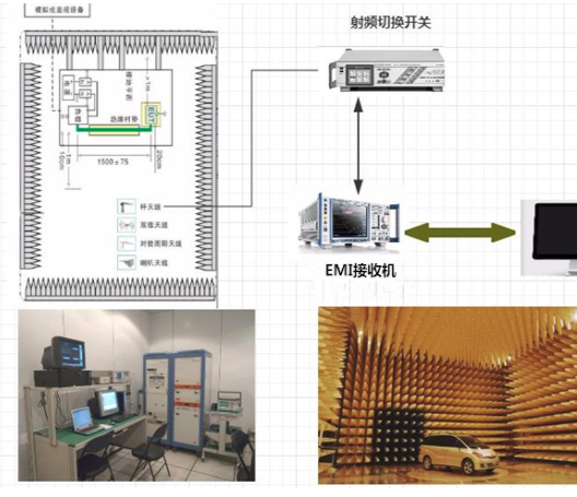 EUT放在地平面上規(guī)定的高度并模擬正常運(yùn)行狀態(tài)來布置。天線按規(guī)定的距離放置。在水平面內(nèi)旋轉(zhuǎn)EUT并記下最大的讀數(shù)。再調(diào)節(jié)天線高度,使直射波和地面反射波接近或達(dá)到同相疊加,找出最大的騷擾值。