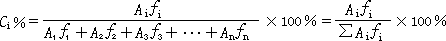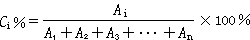 由于組分的量與其峰面積成正比,如果樣品中所有組分都能產(chǎn)生信號(hào),得到相應(yīng)的色譜峰,那么可以用如下歸一化公式計(jì)算各組分的含量。
