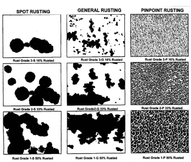 | 生銹級(jí)別 | 生銹面積百分比 | 外觀樣式 | |||