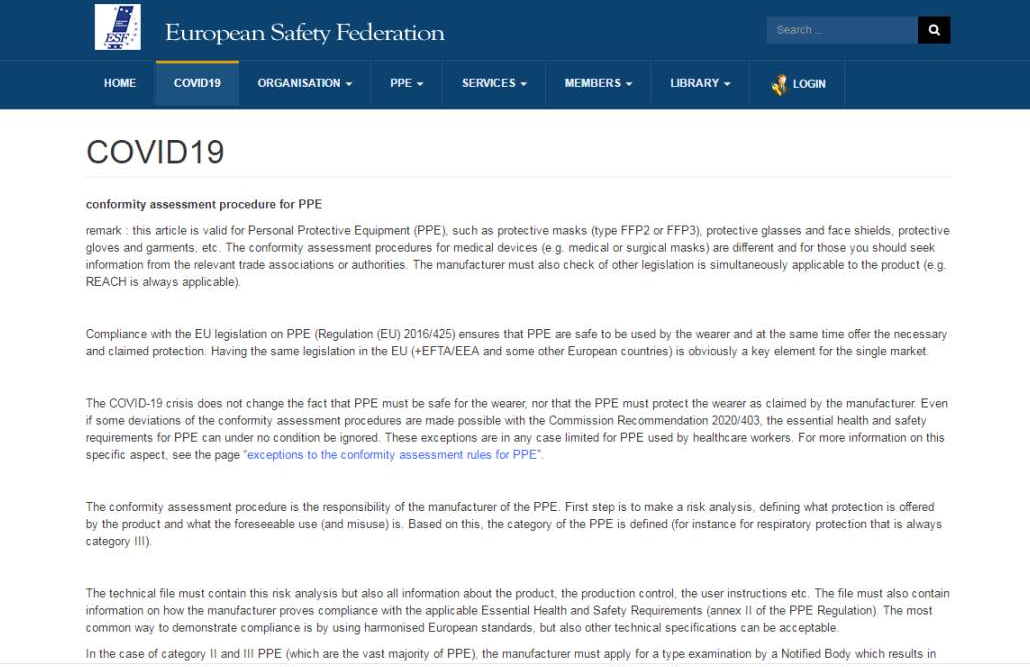 歐洲安全聯(lián)盟在其官方網(wǎng)站上發(fā)文明確:防護口罩等個人防護用品(PPE)需滿足REACH法規(guī)等要求。