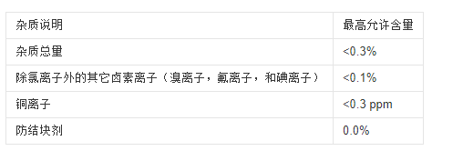 表1 氯化鈉中雜質(zhì)的最高允許含量A,B