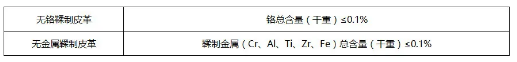 在鞣制過程中考慮到ISO 15115(2019)對(duì)“無鉻鞣制皮革”和/或“無金屬鞣制皮革”的定義,并分別滿足ISO 15115(2019)第3.20和3.57條的要求。