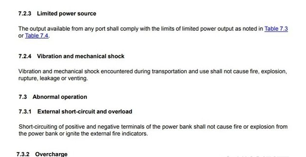 4. 其它有更新或增加的測(cè)試要求: 限制功率測(cè)試,振動(dòng)和機(jī)械沖擊測(cè)試,元器件和接觸面溫度限制,短路和過(guò)載測(cè)試,過(guò)充電測(cè)試等。