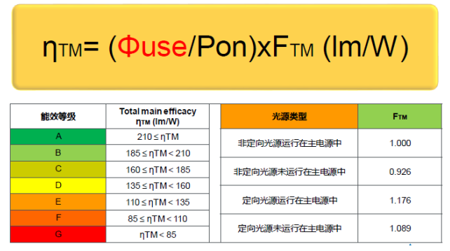 2.標(biāo)簽?zāi)苄У燃?jí)計(jì)算:?TM = (Φuse / Pon) X FTM 單位:(lm/W)。