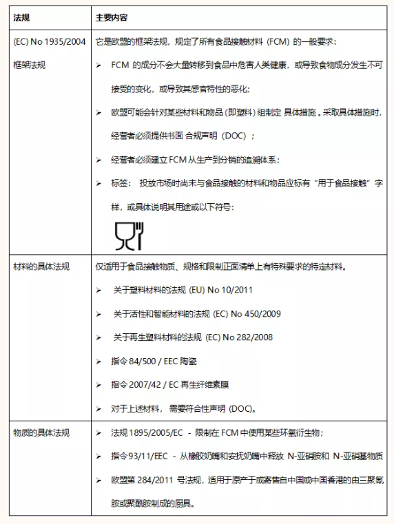 食品接觸材料的產(chǎn)品出口歐盟,不僅要滿足歐盟法規(guī)要求,出口到具體的歐盟成員國還需滿足成員國對食品接觸材料的特殊的法律法規(guī)要求。對于粘合劑,紙張,不銹鋼等歐盟沒有法規(guī)要求,可按歐盟成員國自己的要求和政府間組織-歐洲委員會(CoE)的要求。